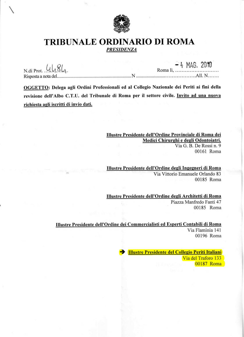 Si pregano, di conseguenza, tutti i consulenti tecnici che hanno ricevuto la nostra lettera e che non hanno ancora inviato il file da noi ricevuto di spedirla all'indirizzo e-mail comunicato con cortese sollecitudine.